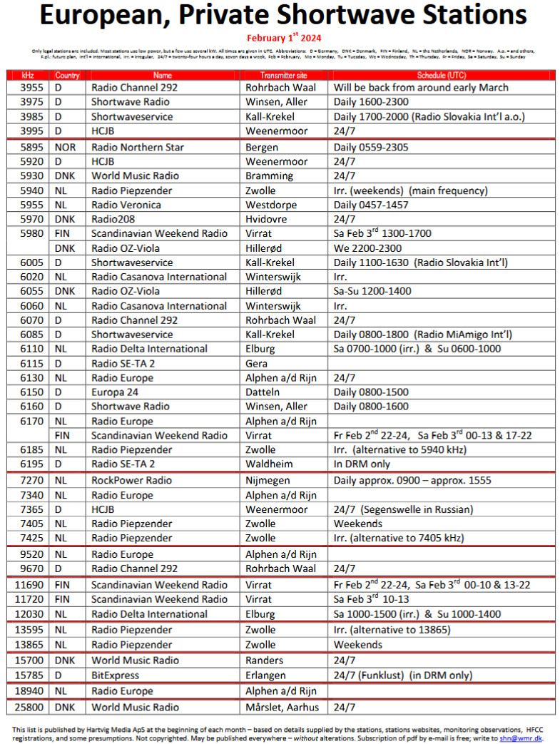 Mind you: due to circumstances 6185 kHz will be off but instead the complete programming